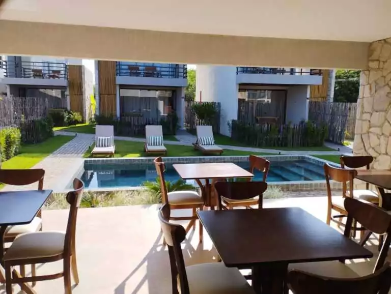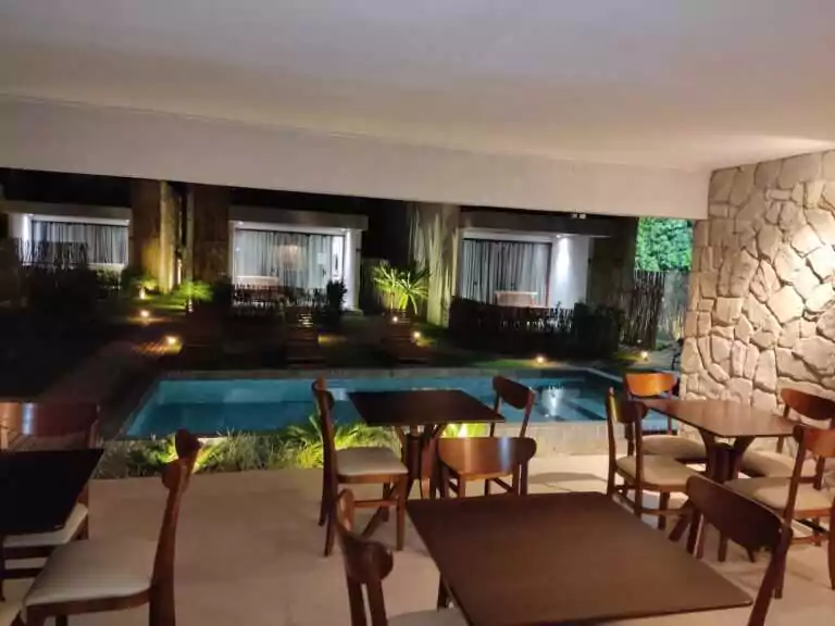 Assim que você entrar em nossa pousada, será recebido por um ambiente externo amplo e aconchegante. Jardins bem cuidados, piscina refrescante e áreas de descanso convidativas que convidam você a relaxar e se reconectar com a natureza exuberante que nos rodeia. É o local perfeito para desfrutar de um café da manhã tranquilo ou um coquetel ao pôr do sol.