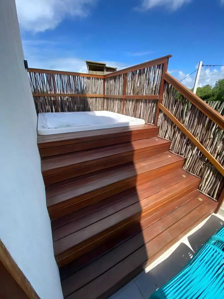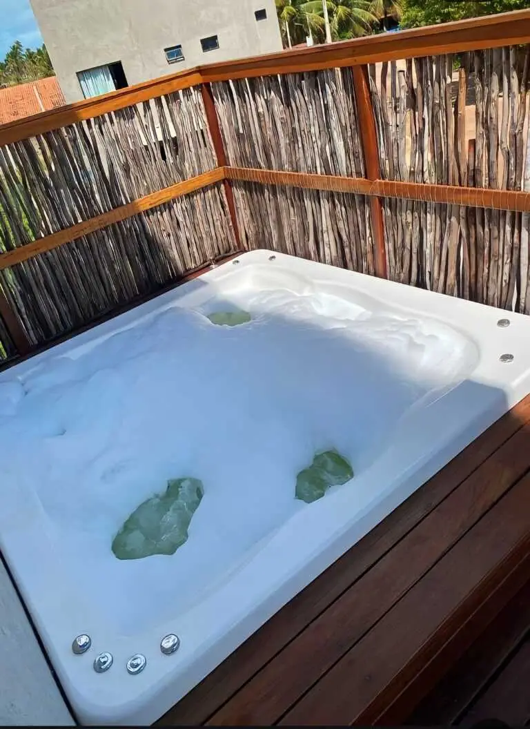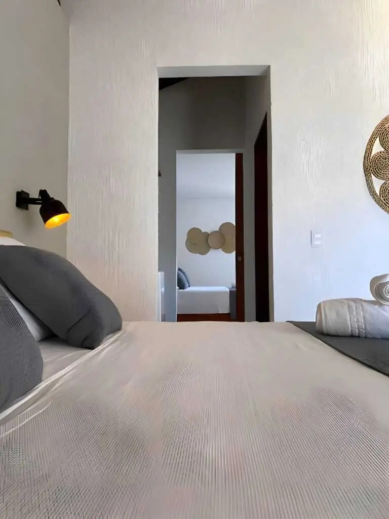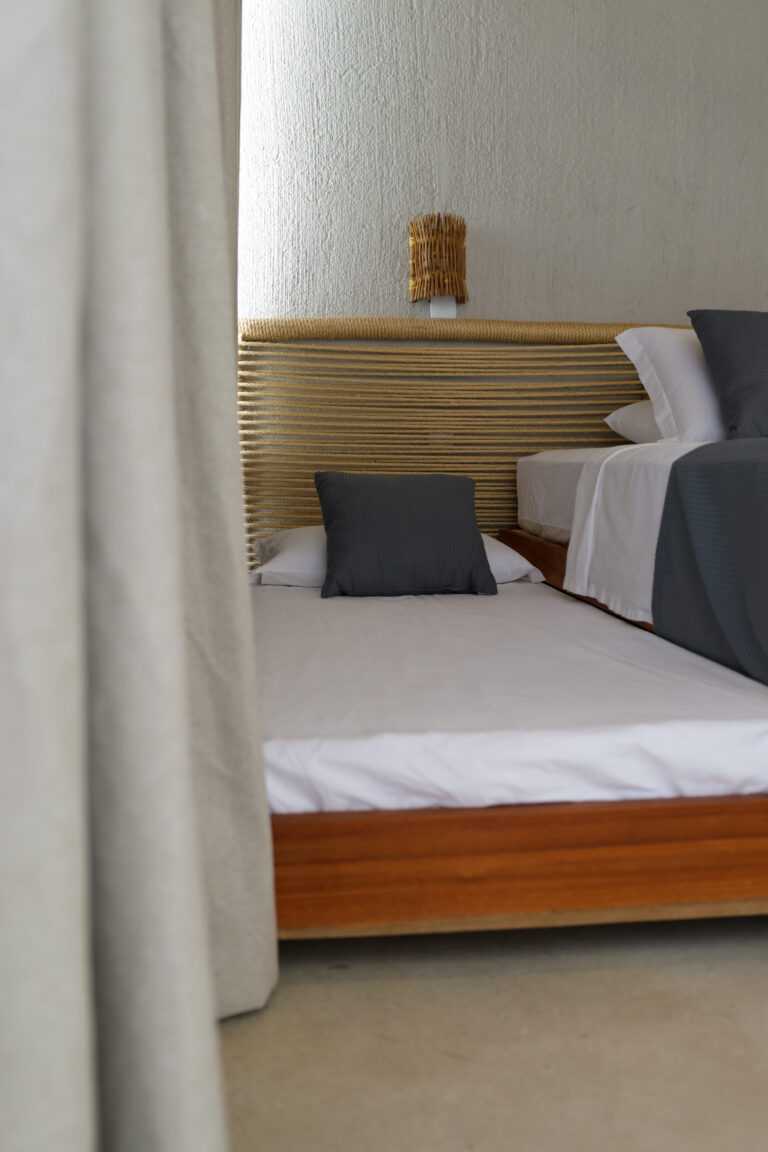 Todas as Suítes Com Piscina Privativa são decoradas com obras minimalistas de artistas locais e luz ambiente. Nesta acomodação, além da comodidade dos nossos serviços, o quarto dispõe de uma varanda privada, com mini sofá acolchoado na paleta de cores da pousada. Suíte espaçosa, dispõe de uma cama king-size que garante uma noite de sono agradável.