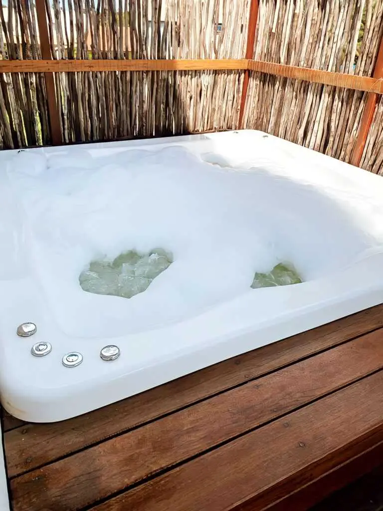 Cada Suíte Executiva combina espaço refinado com toques de arte local, espelhos delicados e iluminação suave, proporcionando serenidade e elegância. Uma jacuzzi para dois e uma varanda íntima com vista para a piscina tornam os momentos juntos ainda mais especiais.